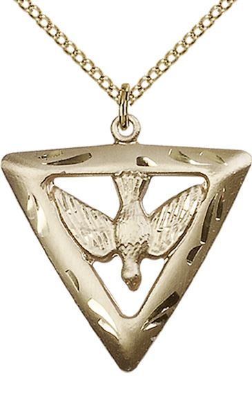 14KT GOLD FILLED HOLY SPIRIT TRIANGLE PENDANT WITH CHAIN - 1" x 7/8"