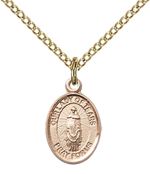 14KT GOLD FILLED OUR LADY OF TEARS PENDANT WITH CHAIN - 1/2" x 1/4"