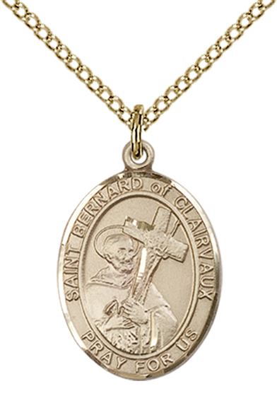 14KT GOLD FILLED ST BERNARD OF CLAIRVAUX PENDANT WITH CHAIN - 3/4" x 1/2"