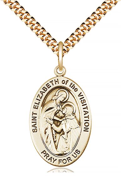 14KT GOLD FILLED ST ELIZABETH OF THE VISITATION PENDANT WITH CHAIN - 1" x 5/8"
