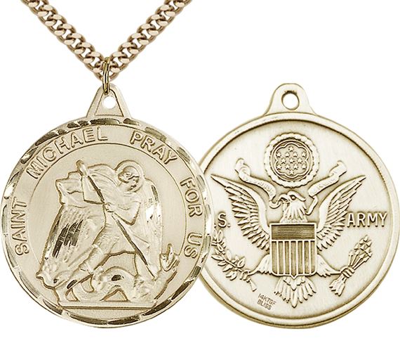 14KT GOLD FILLED ST MICHAEL PENDANT ON A CHAIN - 1 3/8" x 1 1/4"