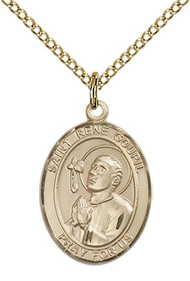 14KT GOLD FILLED ST RENE GOUPIL PENDANT WITH CHAIN - 3/4" x 1/2"