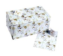 Faint pearl pinstriped bag with a gold leaf stamped Baptismal image that reads: 'God bless you on you Baptism Day' printed on one side. Includes bottom board insert. Measures approximately 8”W x 10”H x 4”D. ...