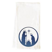 This decorative white flour sack tea towel features a midnight blue vintage silhouette image of the Nativity. Made of 100% cotton, it measures approximately 26”W x 26”H. Flour sack towels are super absorbent, lint ...