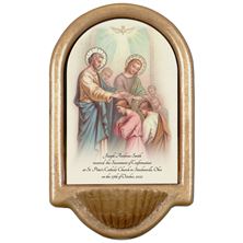 This beautiful Holy Family holy water font is hand-painted. Made of fiberglass Measures approximately 4 1/2”W x 9 1/2'H Imported from Peru ...