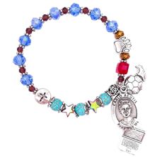 Patron Saint of children, sailors, bakers, brides, and the helpless Feast Day: December 6th Faceted crystals, mother of pearl and dyed howlite Enameled metals and genuine Italian medal of St. Nicholas Additional ...
