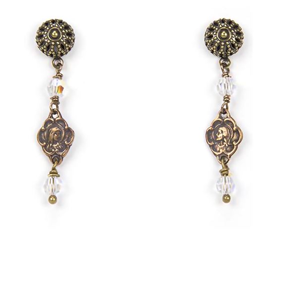 These original Seraphym heirloom designs are exlusive to EWTN, crafted for longevity and quality to be passed on to generations. The solid bronze medals are each hand-cast using the ancient method of lost-wax casting and depict a double-sided design detailing Our Blessed Mother and Our Lord Jesus Christ, that will face each other as they hang from your ears. The beads are genuine, high-quality faceted clear swarovski crystals for Austria. These 1.5-inch earrings can be worn alone or with matching the St. Joan of Arc Clear Swarovski Necklace item # NW1-sold separately. Designed & hand-made in the USA.