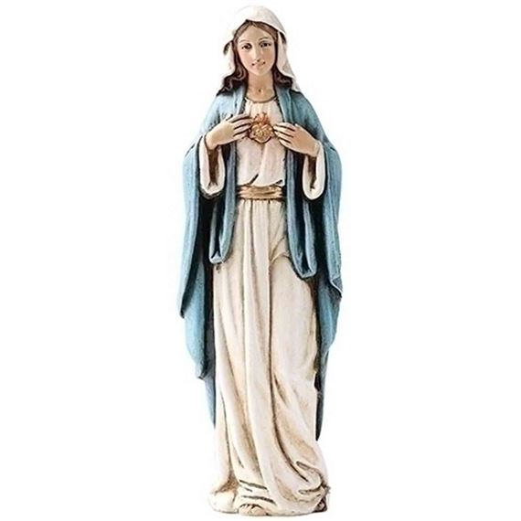 IMMACULATE HEART OF MARY 6-INCH STATUE This beautiful statue of the Immaculate Heart of Mary is made of a resin-stone mix and hand-painted with great attention to detail. Measures 6".