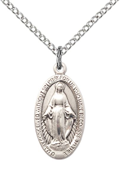 STERLING SILVER MIRACULOUS PENDANT WITH CHAIN - 3/4" x 3/8"