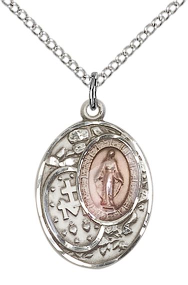 STERLING SILVER MIRACULOUS PENDANT WITH CHAIN - 3/4" x 1/2"