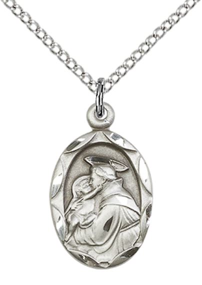 STERLING SILVER ST ANTHONY OF PADUA PENDANT WITH CHAIN - 3/4" x 3/8"