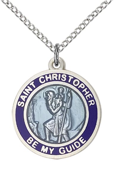 STERLING SILVER ST CHRISTOPHER PENDANT WITH CHAIN - 3/4" x 5/8"