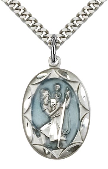 STERLING SILVER ST CHRISTOPHER PENDANT WITH CHAIN - 1" x 5/8"