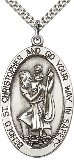 STERLING SILVER ST CHRISTOPHER PENDANT WITH CHAIN - 1 5/8" x 1"