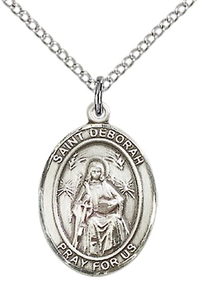 STERLING SILVER ST DEBORAH PENDANT WITH CHAIN - 3/4" x 1/2"