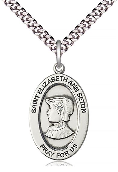 STERLING SILVER ST ELIZABETH ANN SETON PENDANT WITH CHAIN - 1" x 5/8"