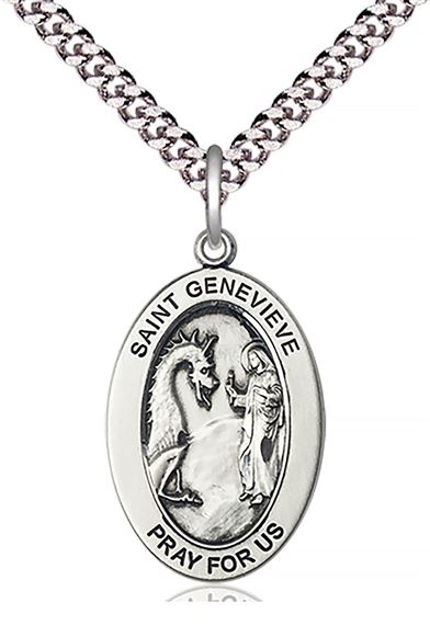 STERLING SILVER ST GENEVIEVE PENDANT WITH CHAIN - 1" x 5/8"