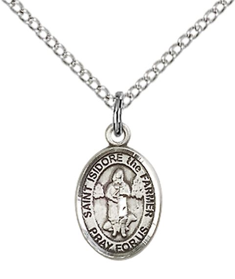 STERLING SILVER ST ISIDORE THE FARMER PENDANT WITH CHAIN - 1/2" x 1/4"