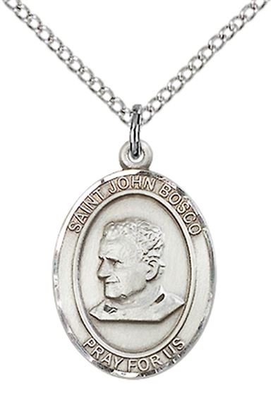 STERLING SILVER ST JOHN BOSCO PENDANT WITH CHAIN - 3/4" x 1/2"