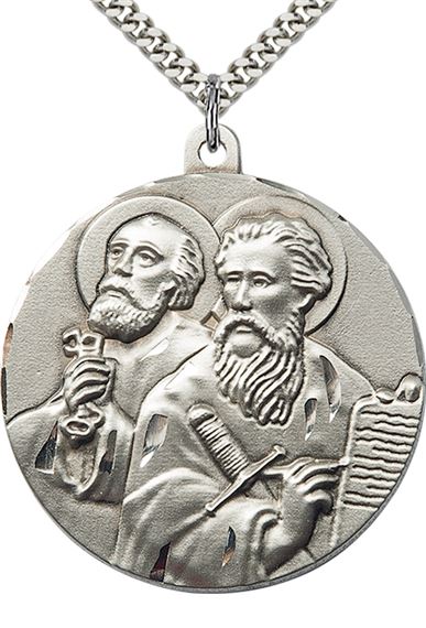 STERLING SILVER ST PETER ST PAUL PENDANT WITH CHAIN - 1 5/8" x 1" 1/2"