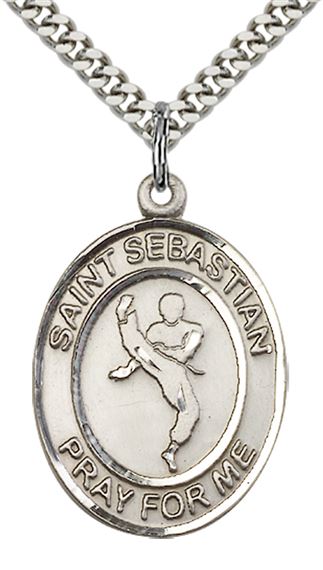 STERLING SILVER ST SEBASTIAN MARTIAL ARTS MEDAL - 1" x 3/4"